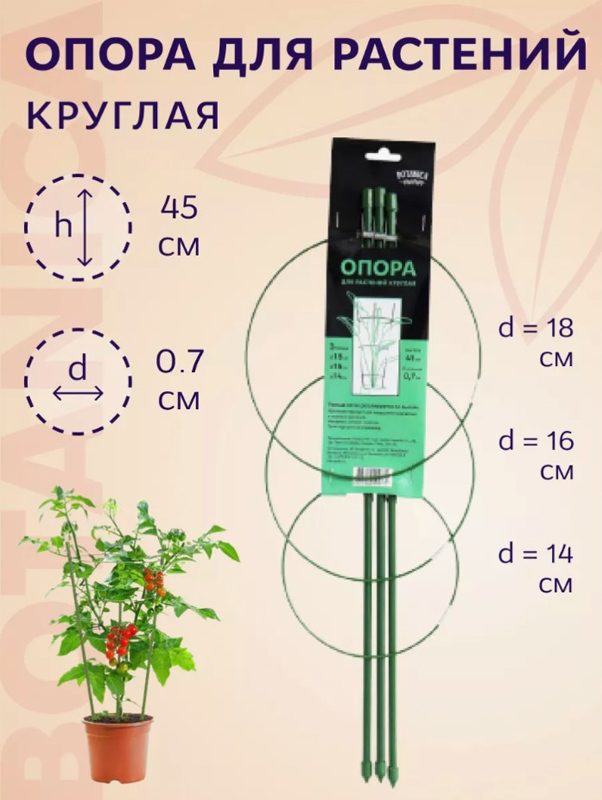 Опора для растений BOTANICA круглая 45см/3 кольца, металл в пластике