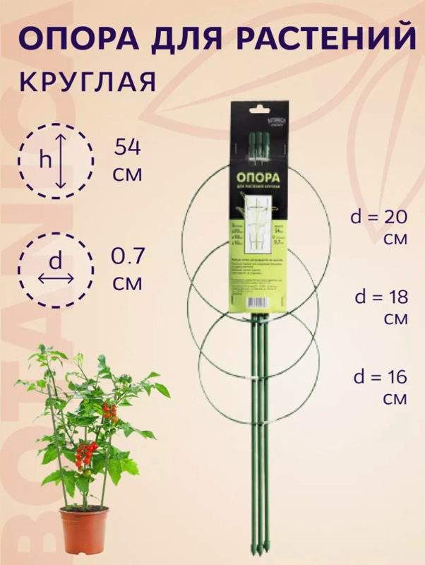 Опора для растений BOTANICA круглая 54см/3 кольца, металл в пластике