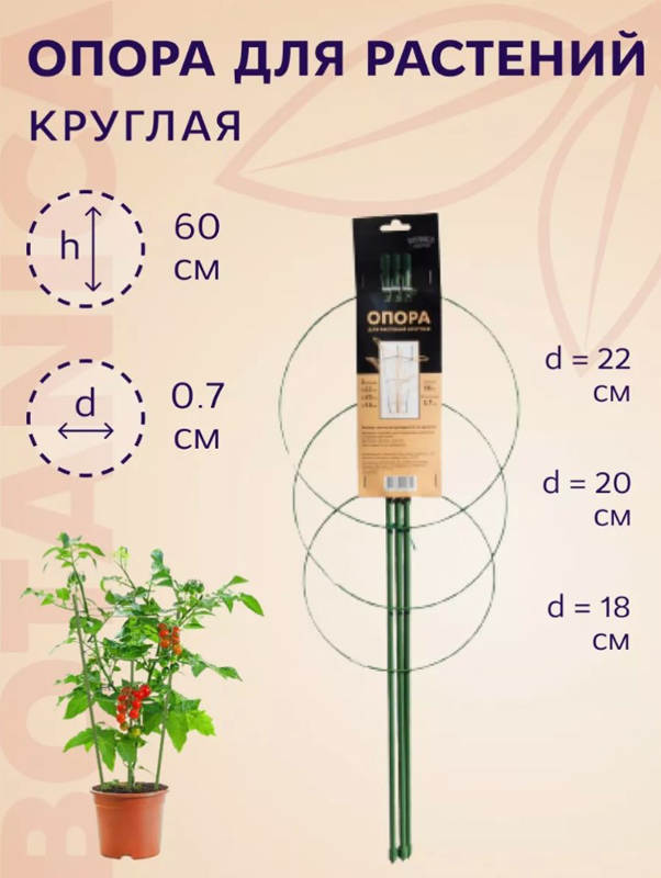 Опора для растений BOTANICA круглая 60см/3 кольца, металл в пластике