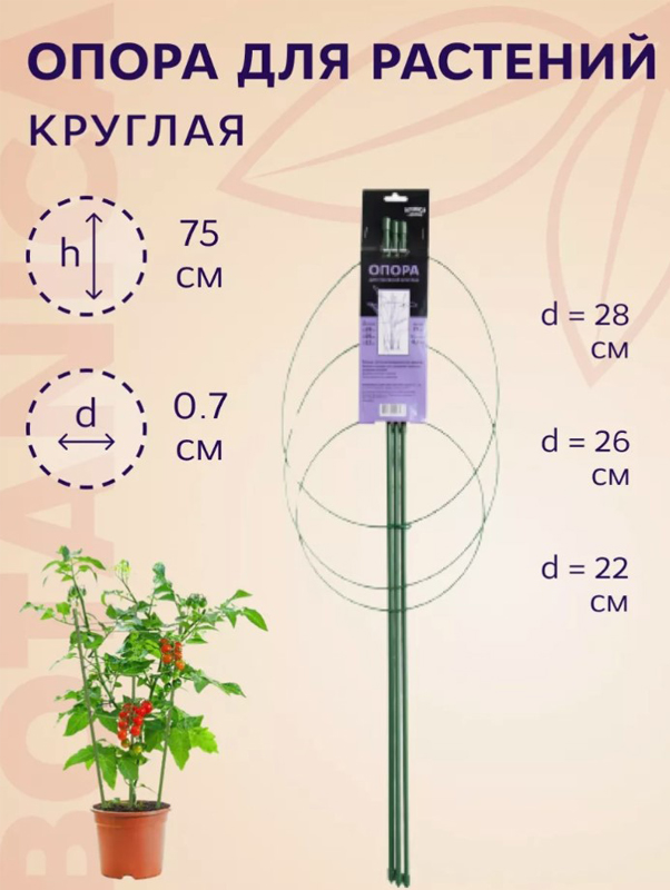Опора для растений BOTANICA круглая 75см/3 кольца, металл в пластике