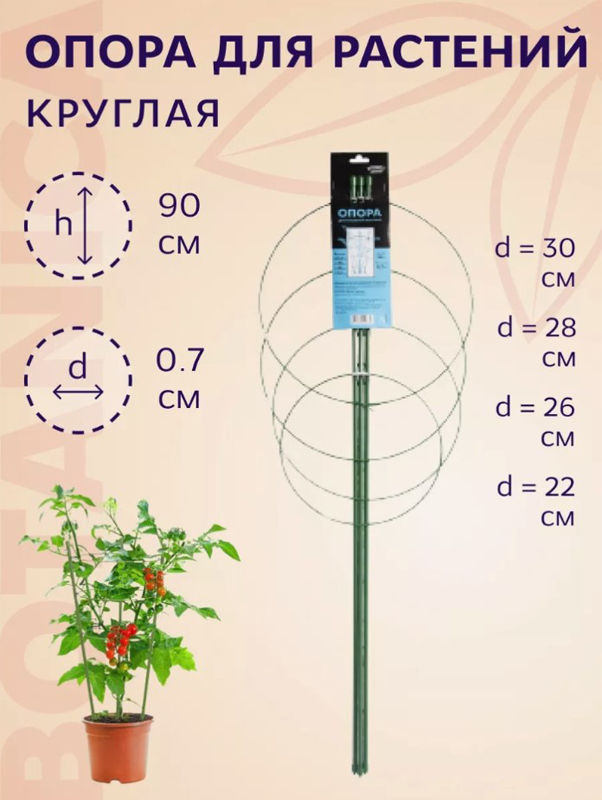 Опора для растений BOTANICA круглая 90см/4 кольца, металл в пластике