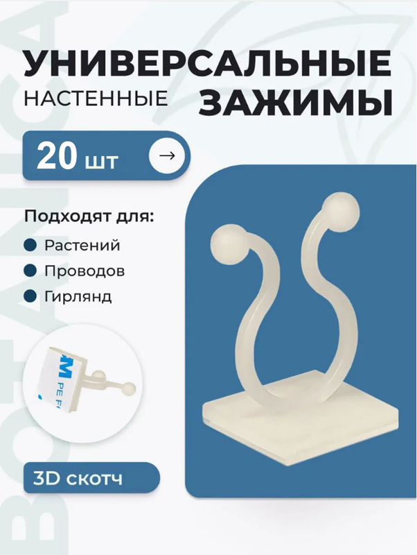 Зажимы (клипсы) универсальные для растений проводов гирлянд, 20 шт., белый