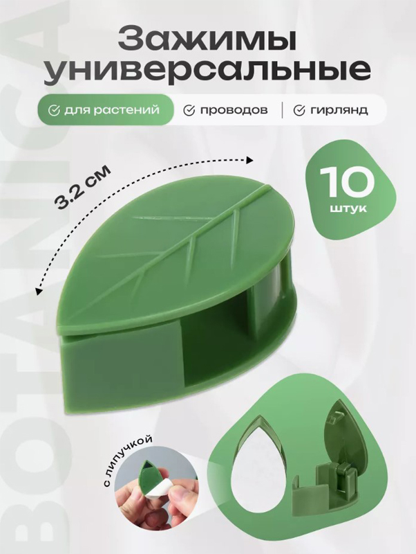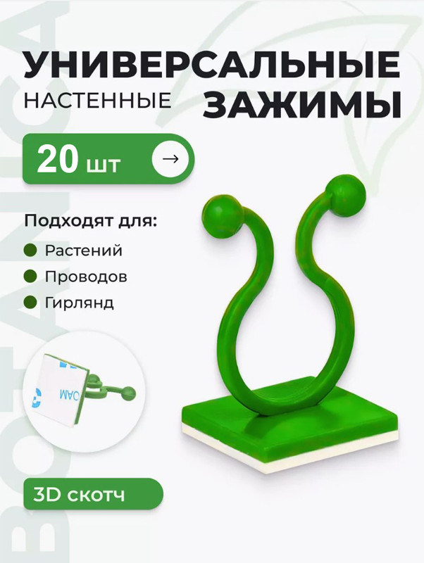 Зажимы (клипсы) универсальные для растений проводов гирлянд, 20 шт., зеленый