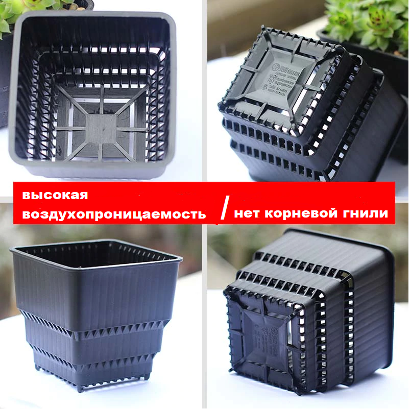 «Дышащие» вазоны представляют собой емкость, по периметру которой в три ряда расположены многочисленные отверстия, снабжающие корневую систему растений кислородом. Подобная конструкция вазонов позволяет контролировать состояние корней, не вынимая растение из горшка, и вовремя принимать меры по устранению заболеваний корневой системы. Помимо этого наличие боковых отверстий предотвращает переувлажнение верхнего слоя субстрата при переливах.