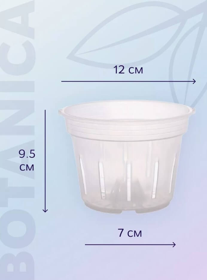 Горшок для орхидей Botanica с боковыми прорезями (12x9.5см/0.5л, прозрачный) - botanica.by Меню