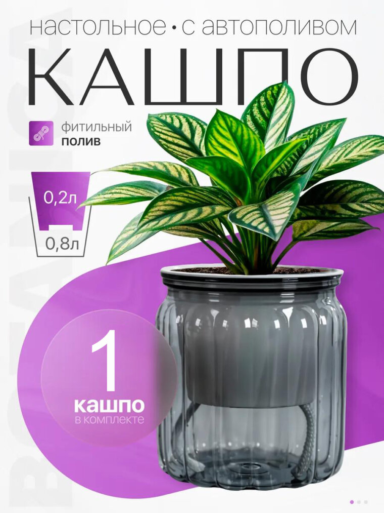 Кашпо с автополивом Botanica Jam 10.5*11.5см, серый - botanica.by Меню