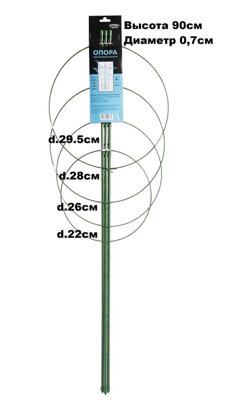 Эта металлическая опора с четырьмя расположенными на разной высоте кольцами предназначена для эффективной поддержки роста различных комнатных и садовых растений. Она помогает растениям сохранять вертикальное положение, предотвращает их полегание и обламывание, а также обеспечивает оптимальное освещение и циркуляцию воздуха, способствуя здоровому развитию и обильному плодоношению или цветению.